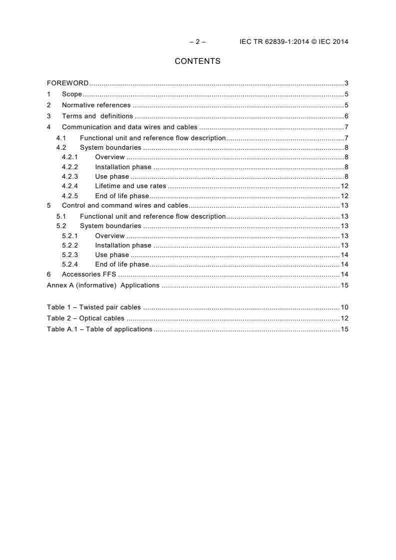 Keywords: IEC TR 62839-1:2014, environmental declaration, PEP/PCR, wires and cables, LCA, functional unit, system boundaries, communication cables, control and command cables.