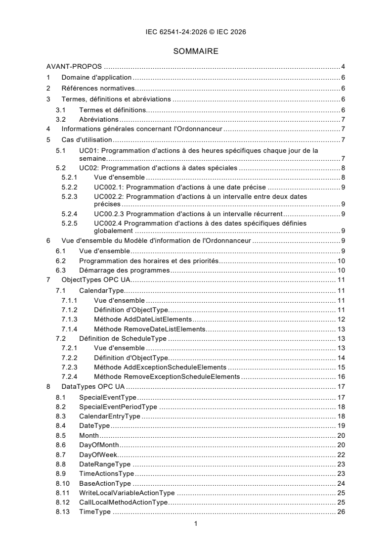 IEC 62541-24:2026 - Architecture unifiée OPC - Partie 24: Ordonnanceur Released:8. 01. 2026 Isbn:9782832708750