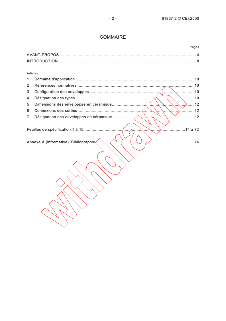 Normative References: Relies on IEC 61240:1994, which provides general rules for preparing package outline drawings and terminal leads for frequency control devices, ensuring that IEC 61837-2 complements and extends these guidelines specifically for ceramic enclosures.
