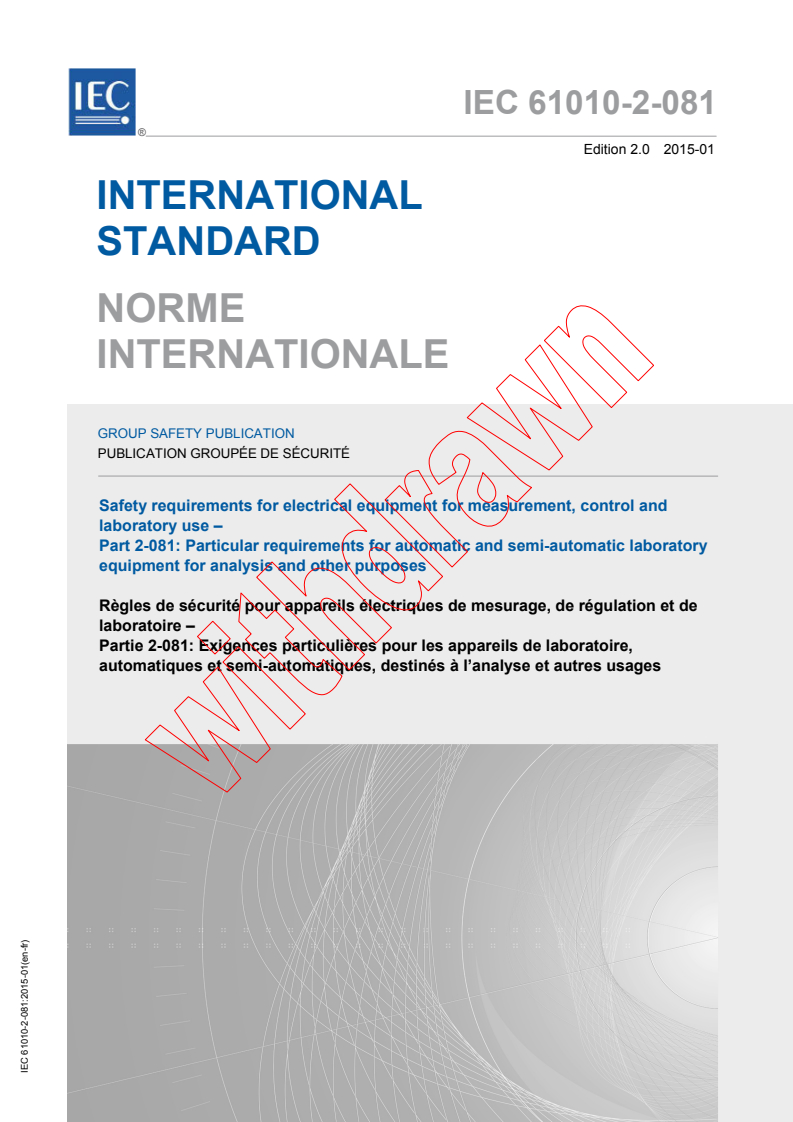 IEC 61010-2-081:2015 - Safety requirements for electrical equipment for measurement, control and laboratory use - Part 2-081: Particular requirements for automatic and semi-automatic laboratory equipment for analysis and other purposes Released:1/23/2015