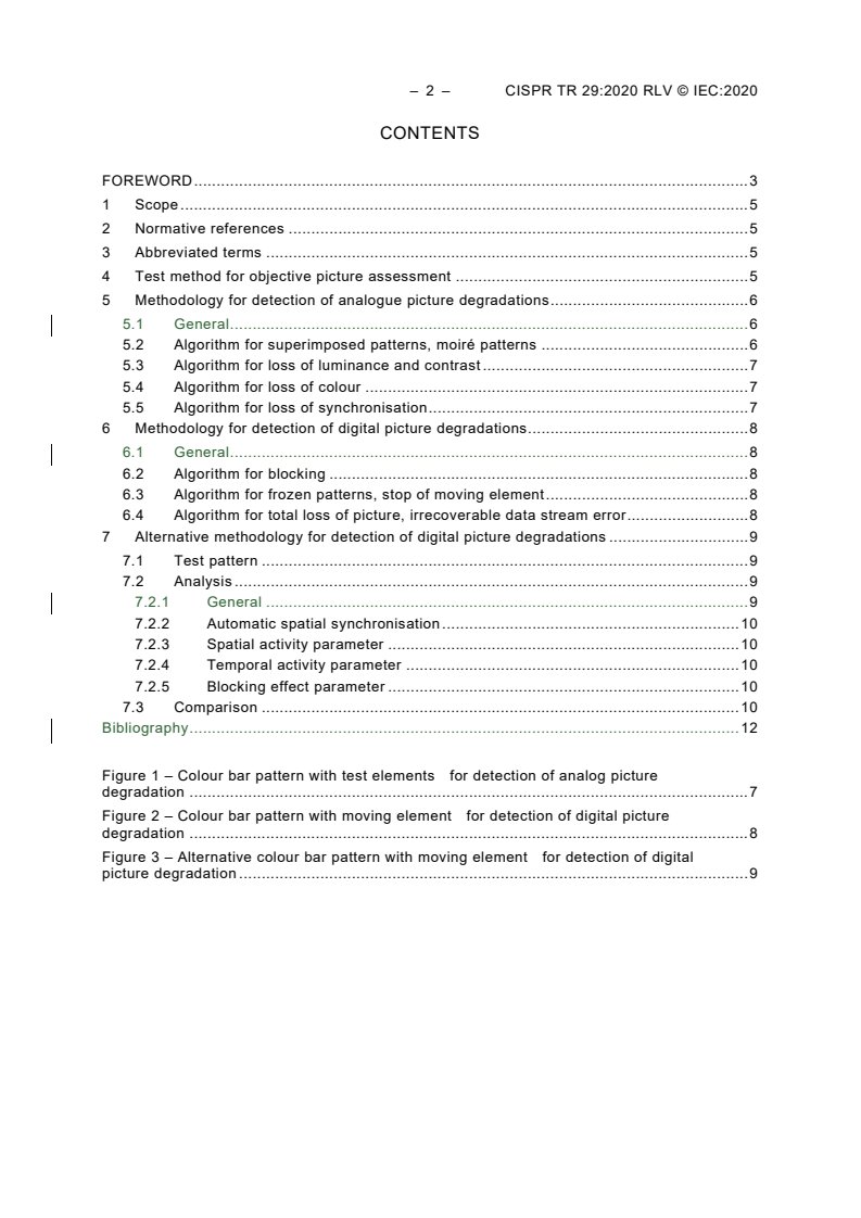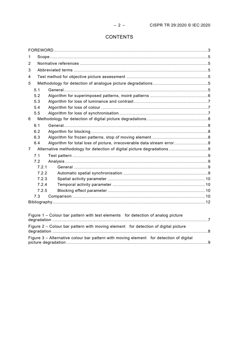 Keywords: CISPR TR 29:2020, objective picture assessment, television broadcast receivers, immunity tests, EMC testing, analogue and digital picture degradation, moiré detection, blocking artifacts, colour bar test pattern.