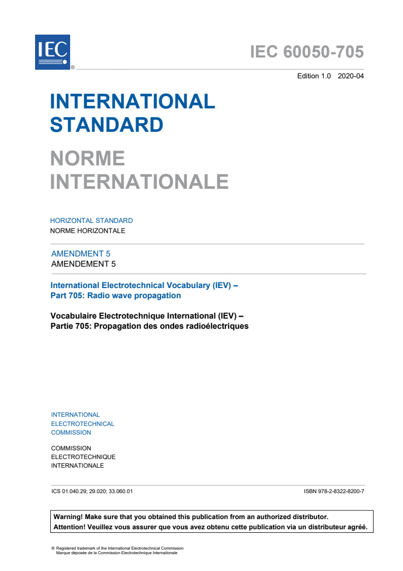 (Amendment)Amendment 5 - International Electrotechnical Vocabulary (IEV) - Part 705: Radio wave propagation