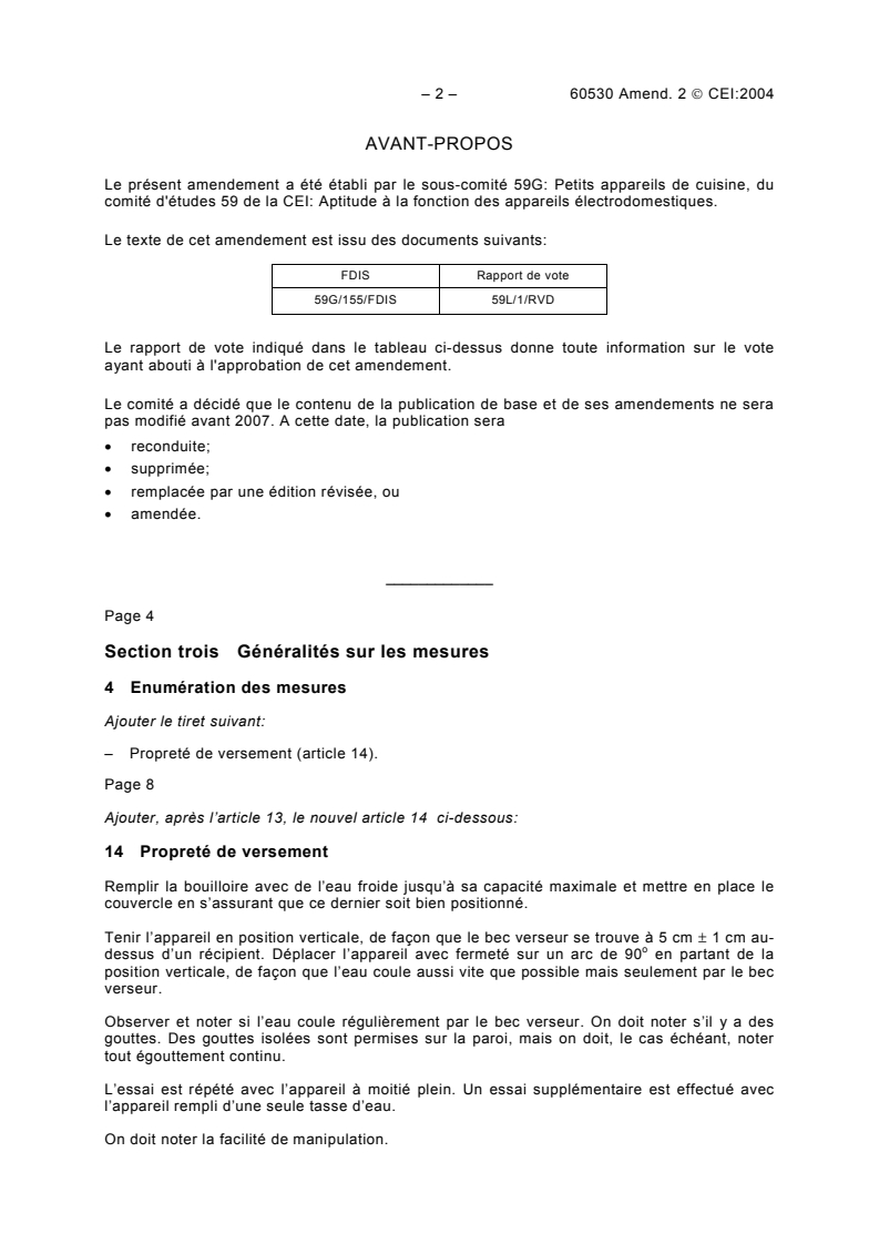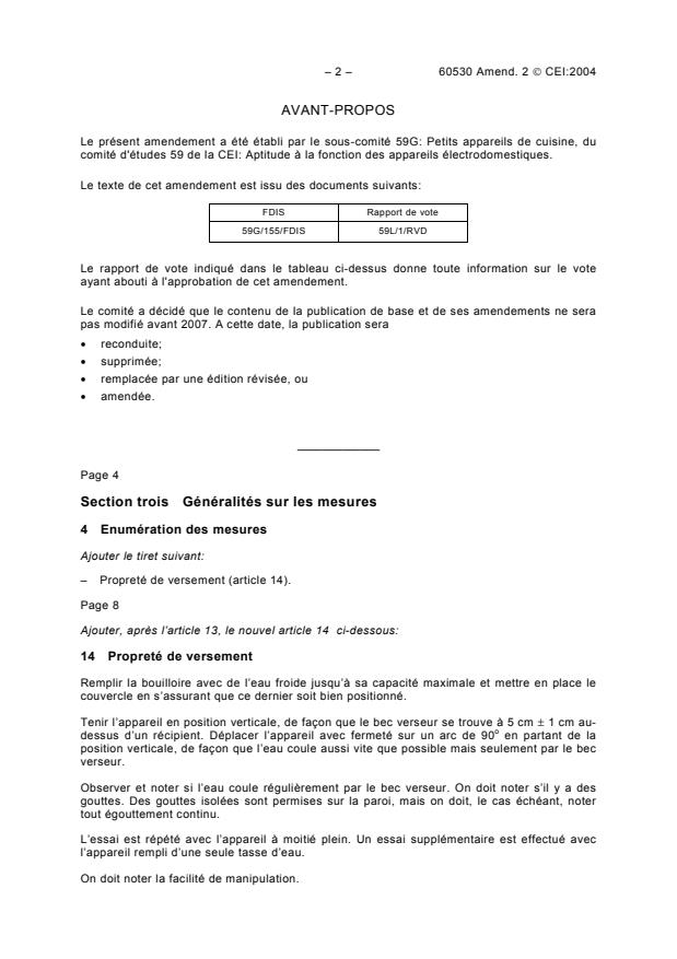Amendement 2 - Méthodes de mesure de l'aptitude à la fonction des bouilloires électriques à usages domestiques et analogues