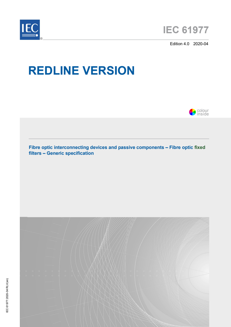 IEC 61977:2020 RLV - Fibre optic interconnecting devices and passive components - Fibre optic fixed filters - Generic specification Released:4/9/2020