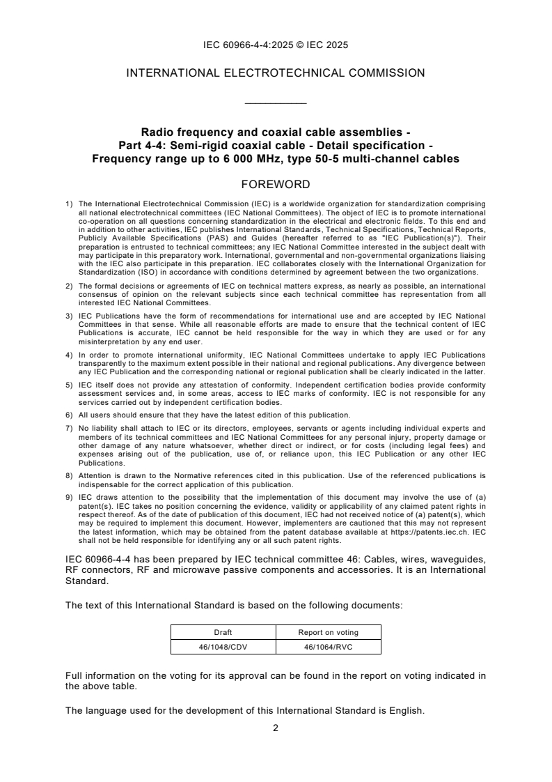 Keywords: IEC 60966-4-4:2025, radio frequency, coaxial cable assemblies, semi-rigid, 50-5, multi-channel, 6000 MHz, return loss, PIM, insertion loss, connectors.