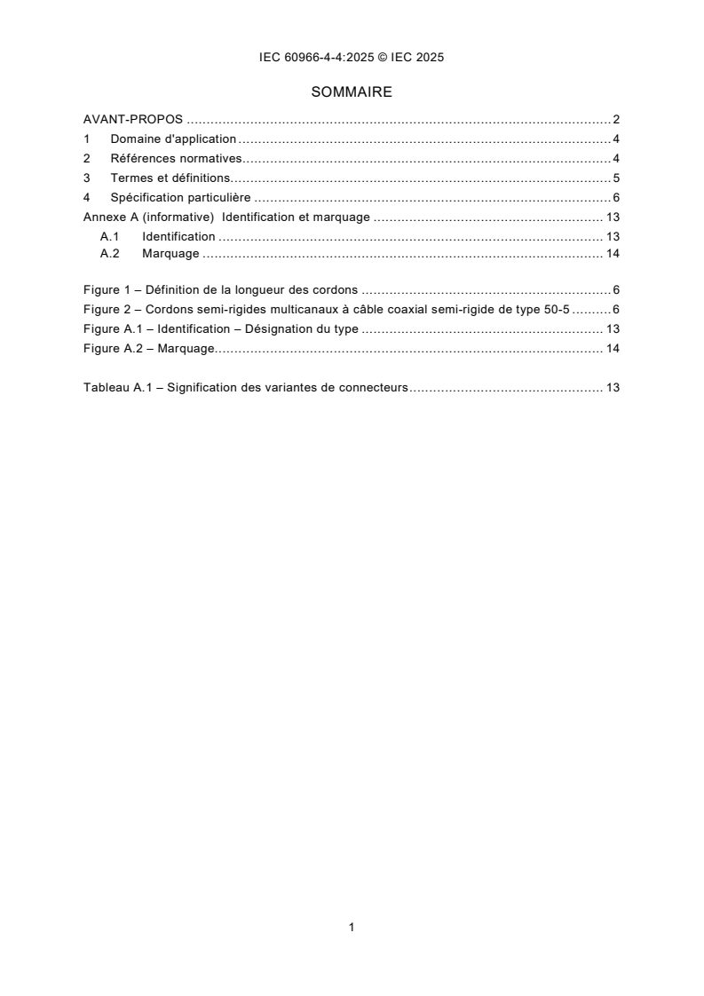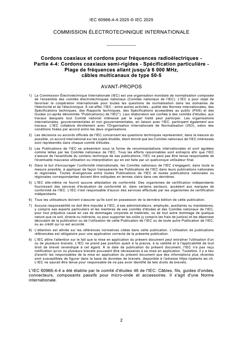 IEC 60966-4-4:2025 - Cordons coaxiaux et cordons pour fréquences radioélectriques - Partie 4-4: Spécification particulière pour cordons semi-rigides multicanaux - Plage de fréquences allant jusqu’à 6 000 MHz, câble coaxial semi-rigide de type 50-5 Released:23. 12. 2025 Isbn:9782832709450
