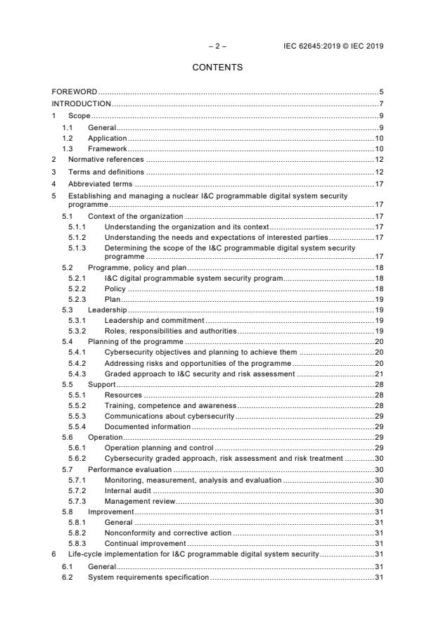IEC 62645:2019 establishes requirements and provides guidance for the development and management of effective computer security programmes for I&C programmable digital systems. Inherent to these requirements and guidance is the criterion that the power plant I&C programmable digital system security programme complies with the applicable country’s requirements. This document defines adequate measures for the prevention of, detection of and reaction to malicious acts by digital means (cyberattacks) on I&C programmable digital systems. This includes any unsafe situation, equipment damage or plant performance degradation. This second edition cancels and replaces the first edition published in 2014. This edition includes the following significant technical changes with respect to the previous edition: a) to align the standard with the new revisions of ISO/IEC 27001; b) to review the existing requirements and to update the terminology and definitions; c) to take account of, as far as possible, requirements associated with standards published since the first edition; d) to take into account the fact that cybersecurity techniques, but also national practices evolve.