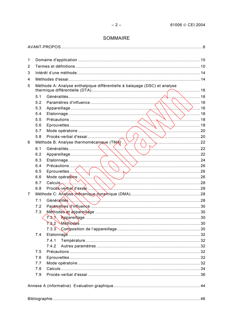 IEC 61006:2004 is a standard published by the International Electrotechnical Commission (IEC). Its full title is "Electrical insulating materials - Methods of test for the determination of the glass transition temperature". This standard covers: Specifies procedures for test methods for the determination of the glass transition temperature of solid electrical insulating materials. They are applicable to amorphous materials or to partially crystalline materials containing amorphous regions which are stable and do not undergo decomposition or sublimation in the glass transition region. Changes from the first edition are as follows: - the standard has been completely revised from an editorial point of view and adapted to the state of the art; - a figure to demonstrate the dynamic mechanical analysis has been introduced.