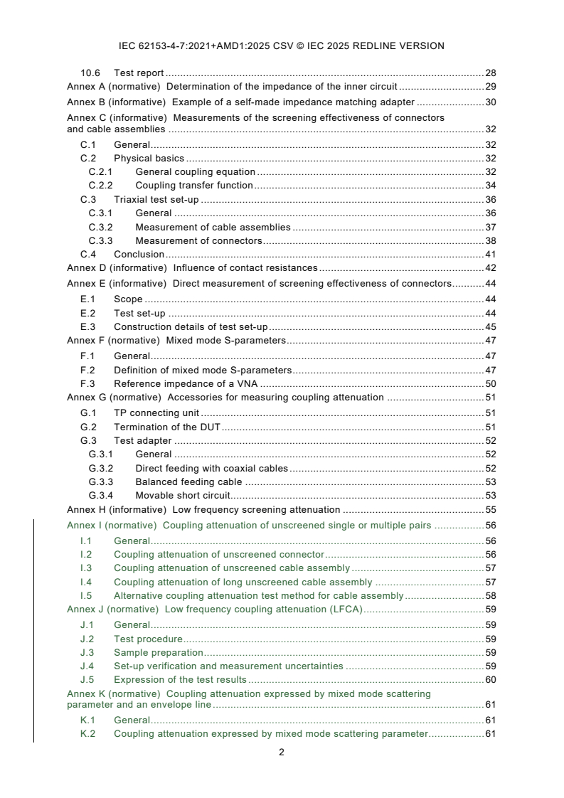 - Annex G (normative) - accessories for measuring coupling attenuation (test adapters, terminations).