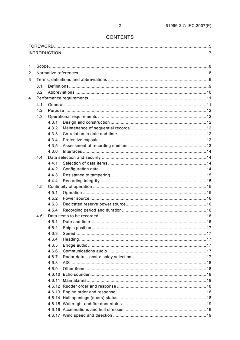 IEC 61996-2:2007 - Maritime navigation and radiocommunication equipment and systems - Shipborne voyage data recorder (VDR) - Part 2: Simplified voyage data recorder (S-VDR) - Performance requirements, methods of testing and required test results Released:11/21/2007 Isbn:2831893569