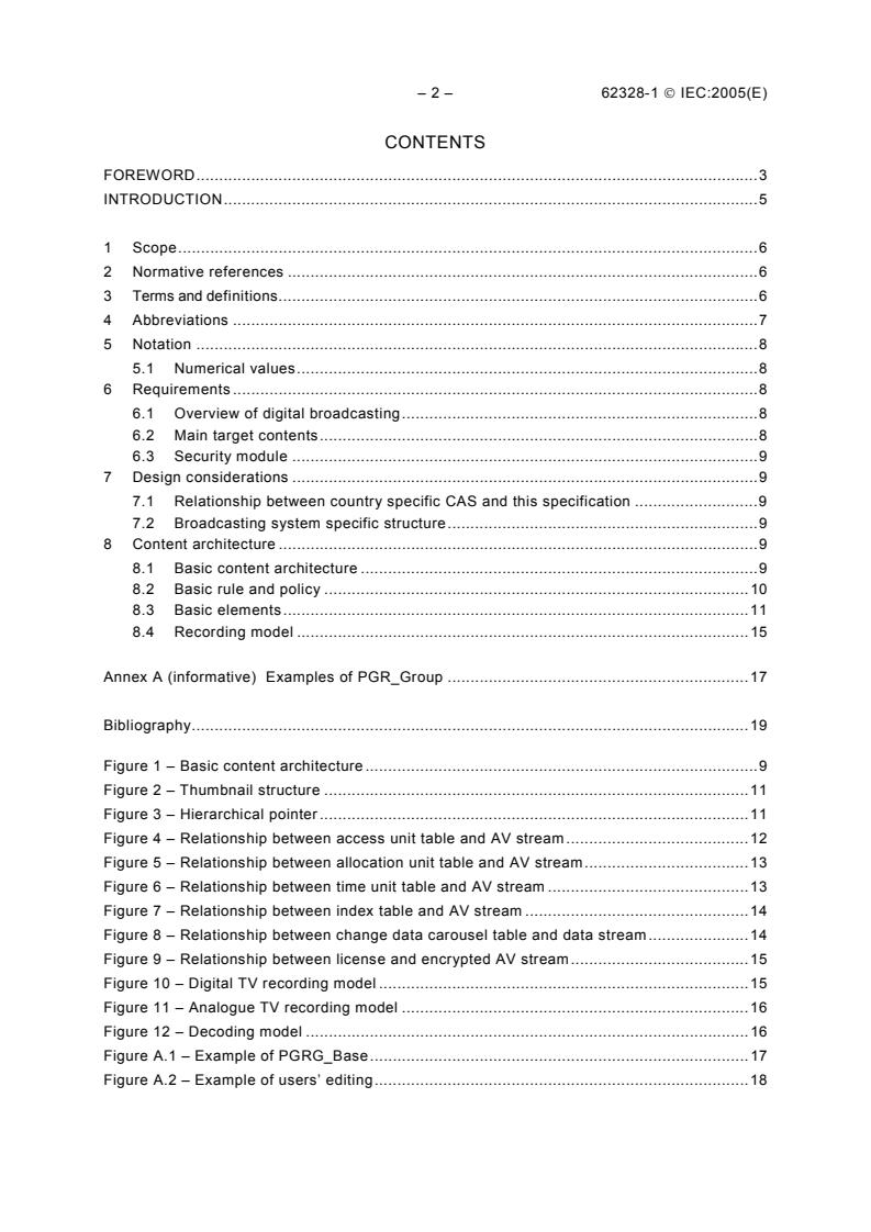 - Normative references & definitions: Establishes the mandatory referenced documents, terms (AV stream, programme, transport stream, partial TS), abbreviations and numerical notation used across the IEC 62328 series.