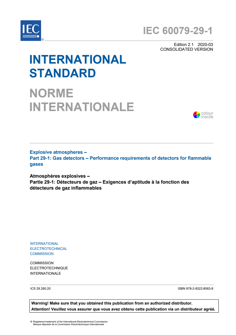 IEC 60079-29-1:2016+AMD1:2020 CSV - Explosive atmospheres - Part 29-1: Gas detectors - Performance requirements of detectors for flammable gases Released:3/24/2020