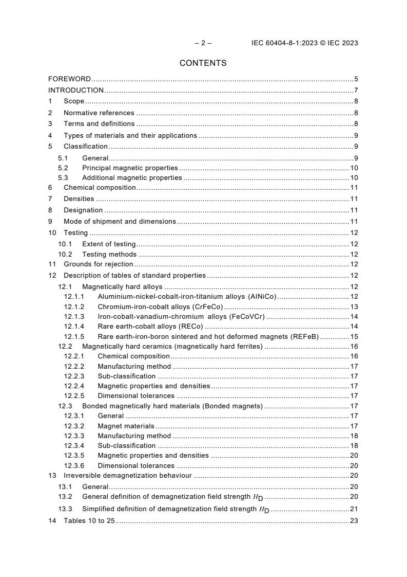 Keywords: IEC 60404-8-1:2023, permanent magnet materials, magnetically hard materials, magnetic properties specification, REFeB magnets, anisotropic magnets, magnetic material standards, AlNiCo magnets, ferrite magnets, dimensional tolerances, magnetic testing, IEC magnetic standards, rare earth magnet specifications.