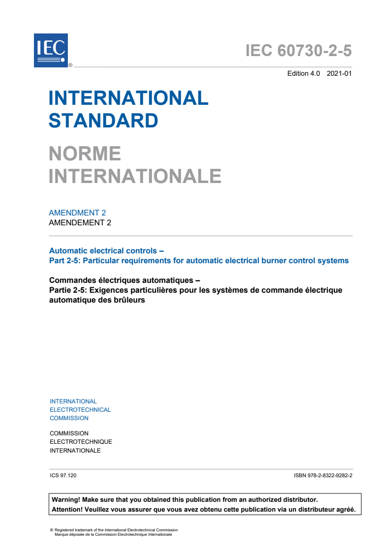 - IEC 60730-2-6: Particular requirements for automatic electrical gas or oil burners and oil burner pumps – complementary to the amendments addressing burner control specifics.