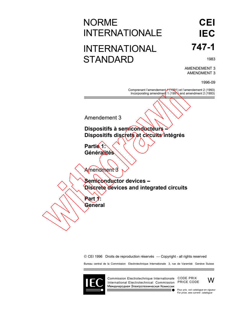 Amendement 3 - Dispositifs à semiconducteurs - Dispositifs discrets - Première partie: Généralités