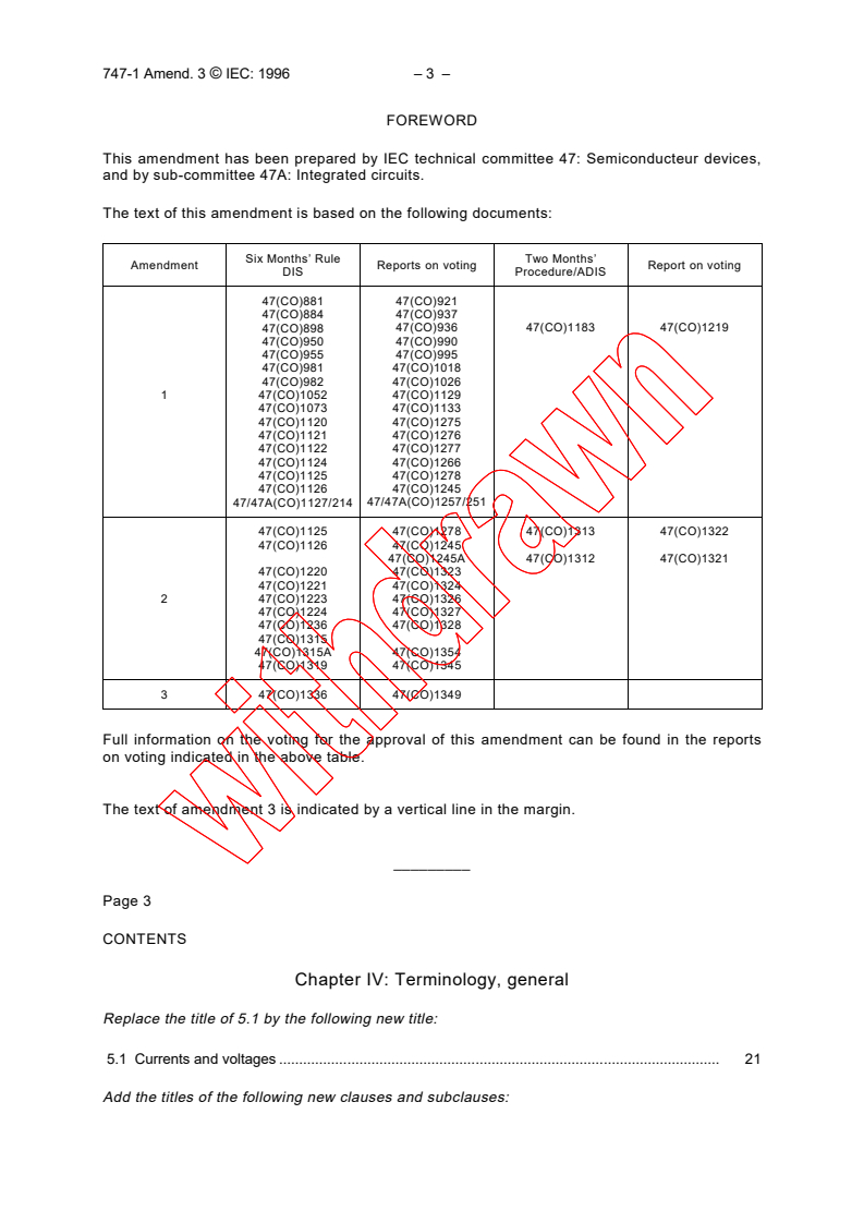 Keywords: IEC 60747-1 AMD3, Semiconductor devices standard, Discrete semiconductor devices, PN junction terminology, Electrostatic discharge test, Semiconductor packaging terms, Forward and reverse current, Transferred-electron effect, Chip bonding wire, Semiconductor device test methods, dB signal ratio symbols