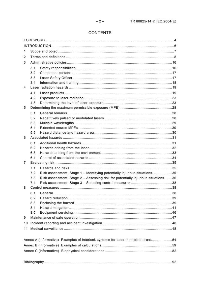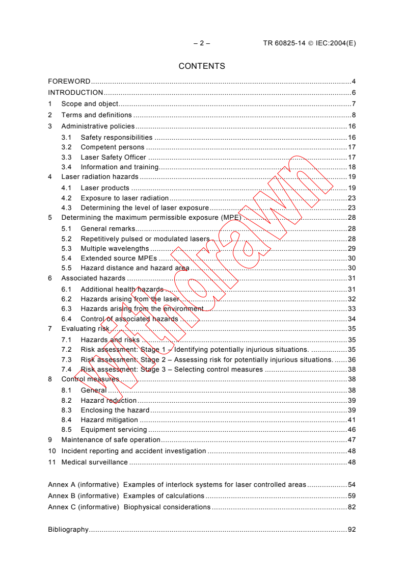 Keywords: IEC TR 60825-14:2004, laser safety, laser products, MPE, hazard area, laser safety officer, IEC 60825-1, risk assessment, interlocks, laser controlled area.