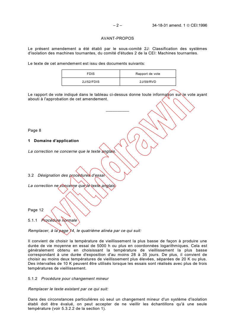 IEC 60034-18-31:1992/AMD1:1996 - Amendment 1 - Rotating electrical machines - Part 18: Functional evaluation of insulation systems - Section 31: Test procedures for form-wound windings - Thermal evaluation and classification of insulation systems used in machines up to and including 50 MVA and 15 kV Released:11/28/1996