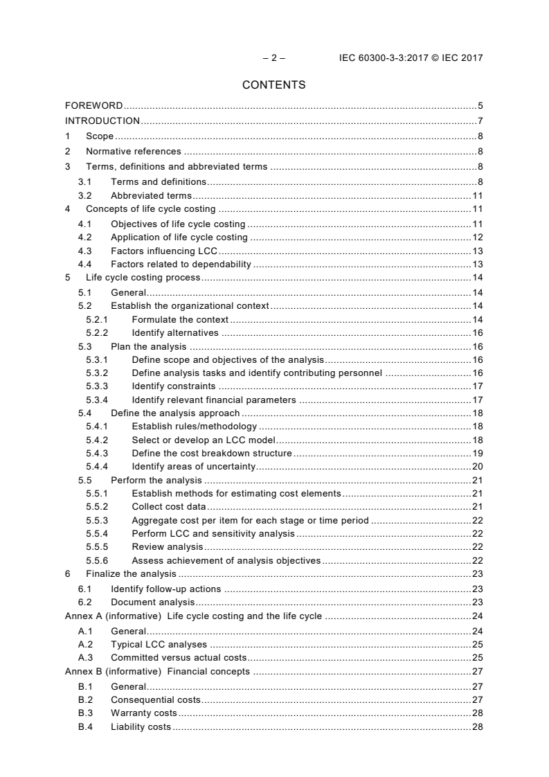 Keywords: IEC 60300-3-3, life cycle costing, dependability management, LCC process, financial evaluation, cost breakdown structure, asset management, total cost of ownership, dependability costs, financial risk, international standards.
