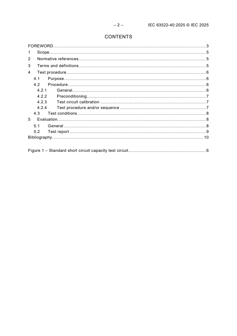 Keywords: IEC 63522-40:2025, electrical relays, short circuit testing, SCPD, device under test, relay testing procedures, short circuit protective device, electrical relay standards, IEC electrical standards, relay evaluation, short circuit capacity test.