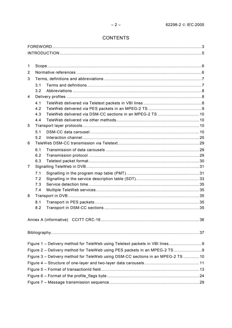Keywords: IEC 62298-2:2005, TeleWeb, delivery methods, transmission layer, VBI, Teletext, DVB, MPEG‑2 TS, DSM‑CC data carousel, PES, PMT, SDT, broadcast data services.
