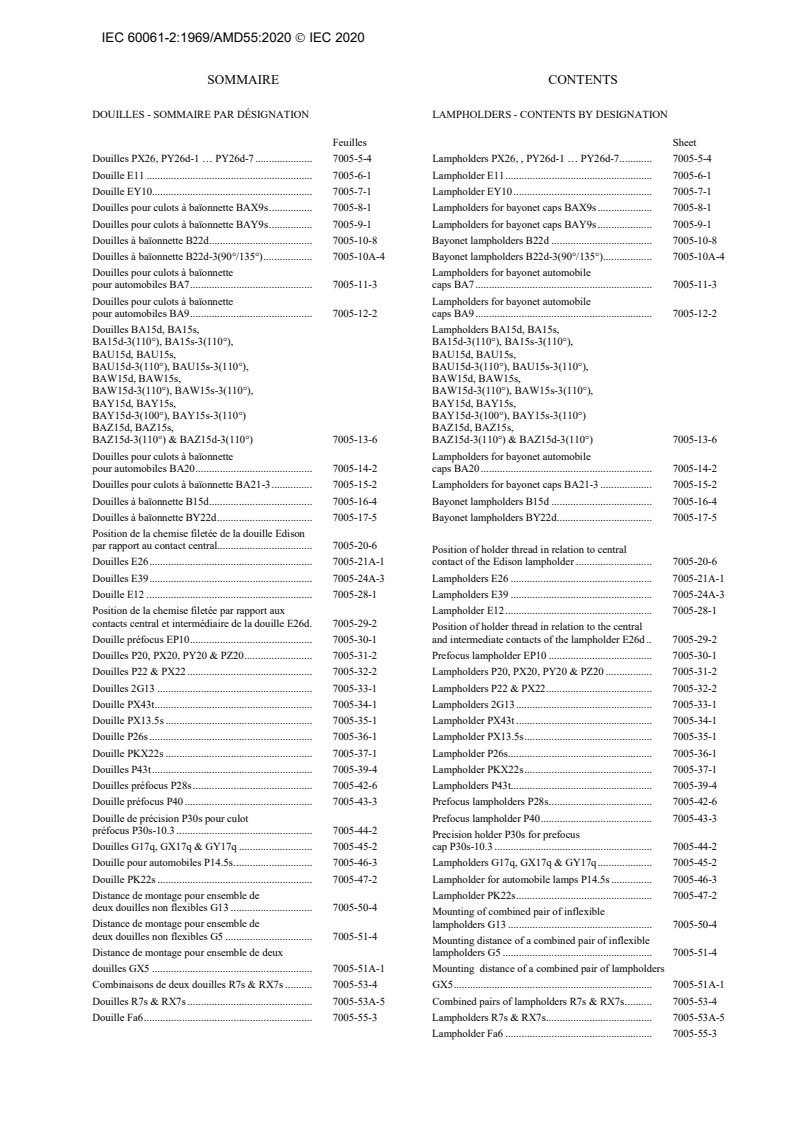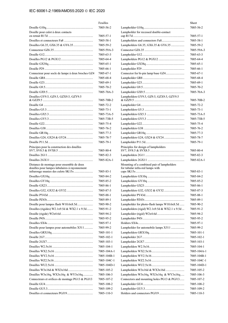 Amendement 55 - Culots de lampes et douilles ainsi que calibres pour le contrôle de l'interchangeabilité et de la sécurité - Partie 2: Douilles