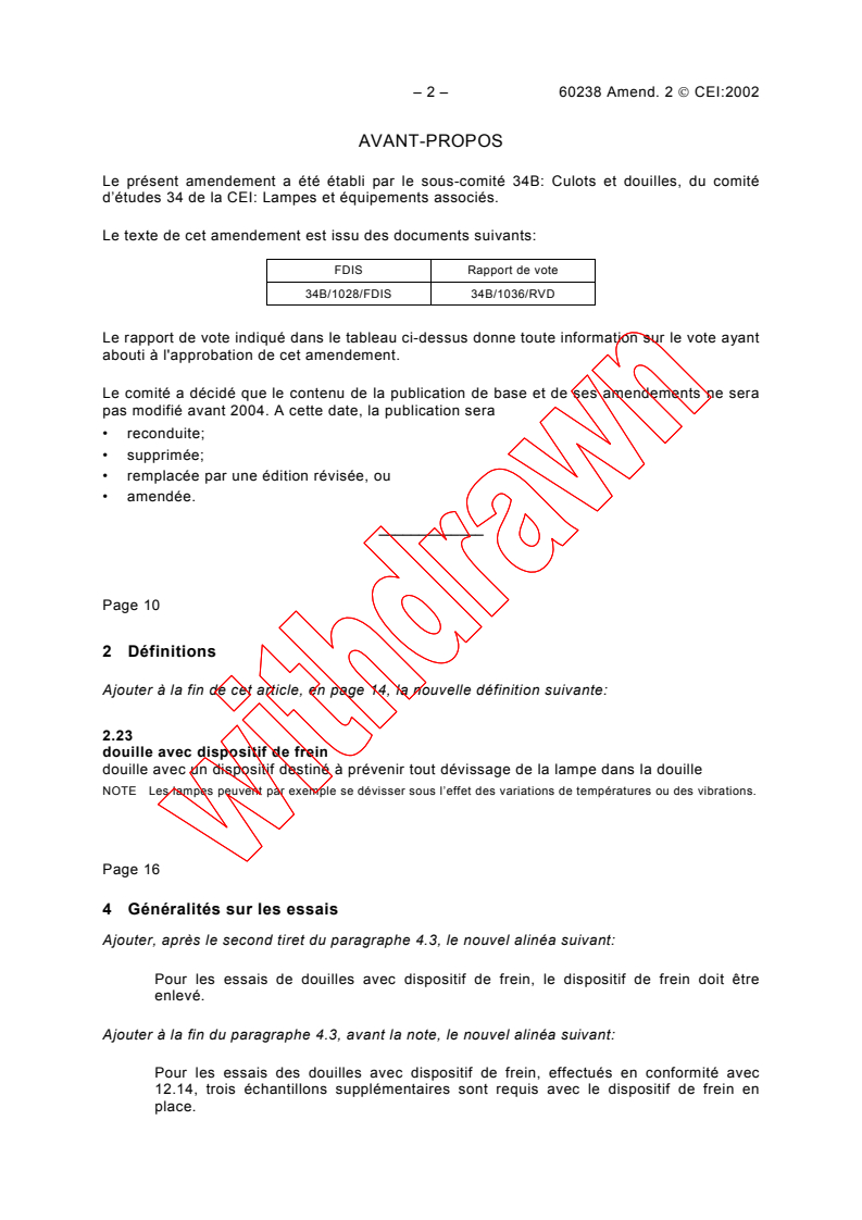 Le présent amendement a été établi par le sous-comité 34B: Culots et douilles, du comité