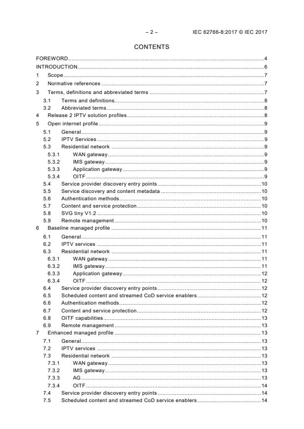 IEC 62766-8:2017 is a standard published by the International Electrotechnical Commission (IEC). Its full title is "Consumer terminal function for access to IPTV and open multimedia services - Part 8: Profiles". This standard covers: IEC 62766-8:2017(E) defines three example profiles that may be adopted for implementation in suitable devices.