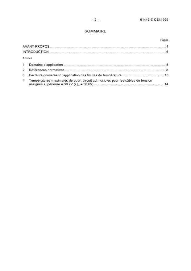 IEC 61443:1999 is a standard published by the International Electrotechnical Commission (IEC). Its full title is "Short-circuit temperature limits of electric cables with rated voltages above 30 kV (Um = 36 kV)". This standard covers: Gives guidance on the short-circuit maximum temperature limits of electric cables having rated voltages above 30 kV (Um = 36 kV) up to the voltage limits given in IEC 60141 and IEC 60840, with regard to the following: - insulating materials; - oversheath and bedding materials; - conductor and metallic sheath materials and methods of connection. The design of accessories and the influence of the installation conditions on the temperature limits are taken into consideration. The calculation of the permissible short-circuit current in the current-carrying components of the cable should be carried out in accordance with IEC 60949.