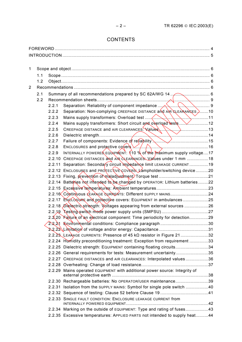 Keywords: IEC TR 62296, IEC 60601-1, medical electrical equipment safety, dielectric strength, creepage distances, leakage current, lithium batteries, SMPSU, conformity assessment, IEC SC 62A WG14.