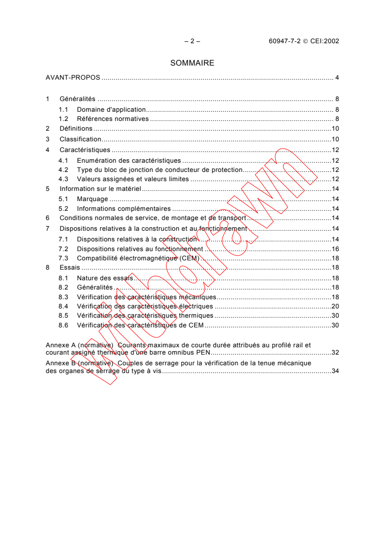 IEC 60947-7-2:2002 is a standard published by the International Electrotechnical Commission (IEC). Its full title is "Low-voltage switchgear and controlgear - Part 7-2: Ancillary equipment - Protective conductor terminal blocks for copper conductors". This standard covers: Applies to protective conductor terminal blocks with PE function up to 120 mm2 (250 MCM) and to protective conductor terminal blocks with PEN function equal to and above 10 mm2 (AWG 8).