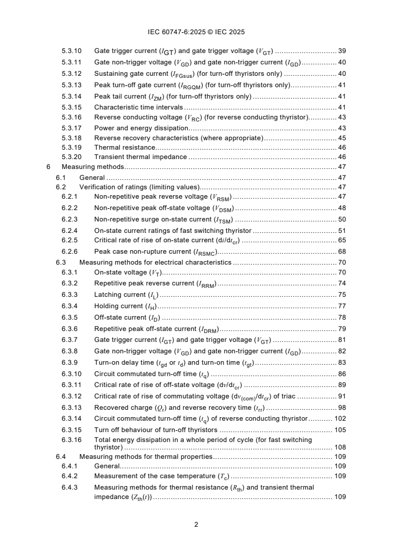 Keywords: IEC 60747-6:2025, thyristors, semiconductor devices, discrete devices, triac, turn-off thyristor, thermal resistance, testing methods, ratings and characteristics.