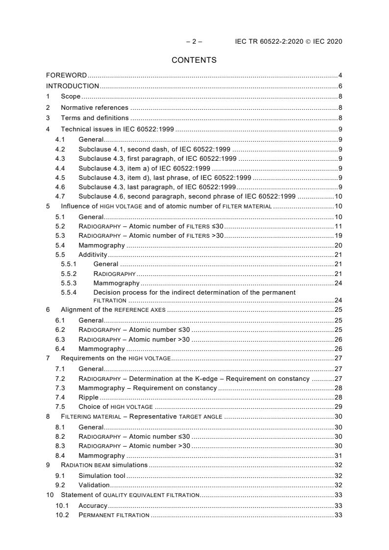 Keywords: IEC TR 60522‑2:2020, Quality Equivalent Filtration, permanent filtration, diagnostic X‑rays, medical electrical equipment, QEF, filtration, radiography, mammography, half‑value layer, X‑ray spectrum.