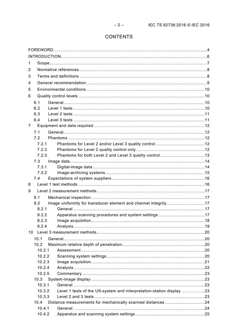 Keywords: IEC TS 62736:2016, ultrasonics, pulse‑echo scanners, ultrasound QC, periodic testing, image uniformity, depth of penetration, transducer testing, diagnostic medical ultrasound.