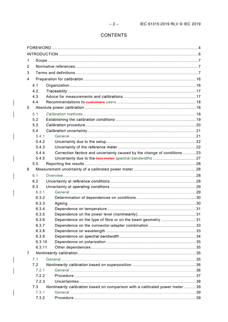 IEC 61315:2019 is applicable to instruments measuring radiant power emitted from sources that are typical for the fibre-optic communications industry. These sources include laser diodes, light emitting diodes (LEDs) and fibre-type sources. Both divergent and collimated radiations are covered. This document defines the calibration of power meters to be performed by calibration laboratories or by power meter manufacturers. This third edition cancels and replaces the second edition published in 2005. It constitutes a technical revision. This edition includes the following significant technical changes with respect to the previous edition: a) update of terms and definitions; b) update of 5.1, including Table 1 (new type of source); c) update of Annex A; d) addition of Annex B on dB conversion. Keywords: Fibre-optic power meters