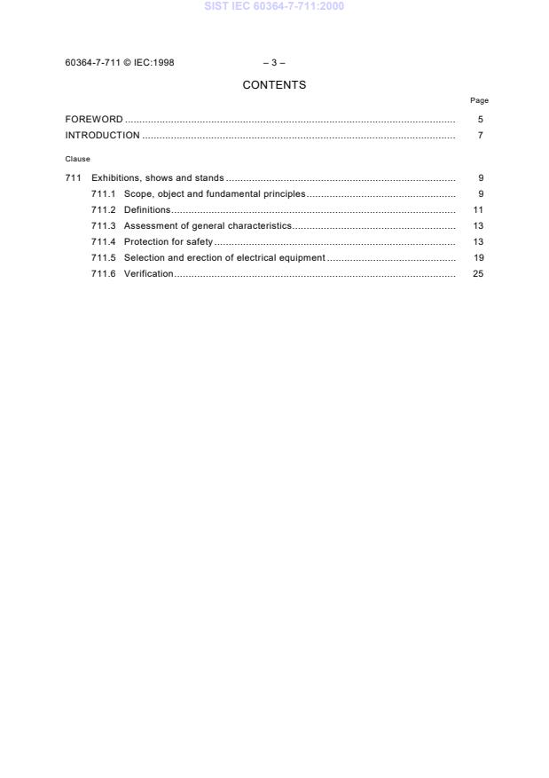 IEC 60364‑7‑711:2000 specifies requirements for temporary electrical installations in exhibitions, shows and stands (including mobile and portable displays and equipment). Its objective is to protect users by defining safe design, selection, erection and verification rules for temporary structures and their electrical supplies. The part modifies or supplements general IEC 60364 provisions to address the specific hazards of temporary exhibition environments.