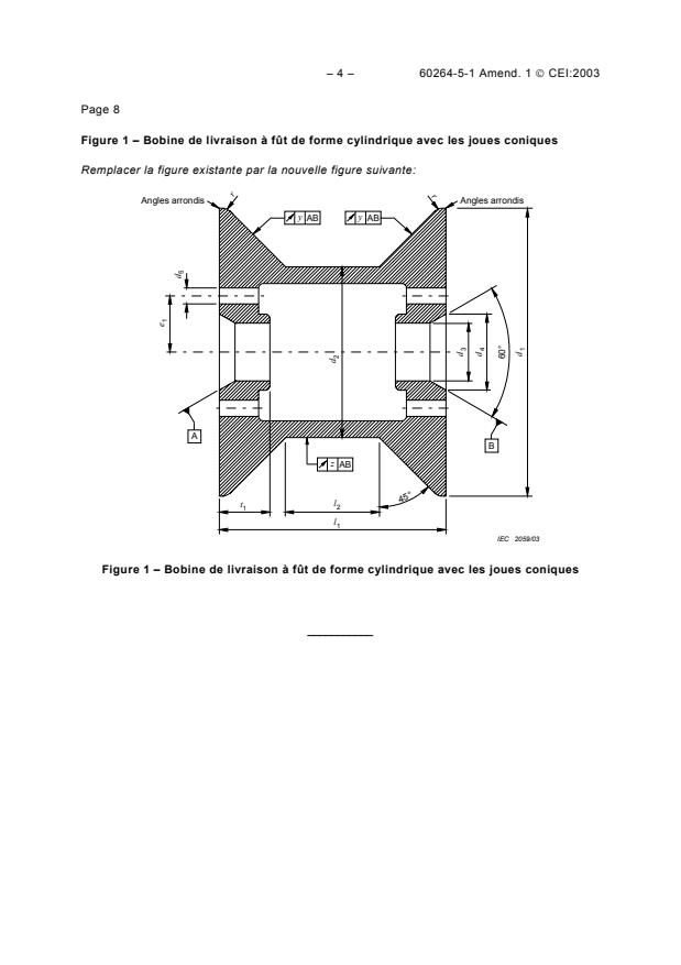 Amendement 1 - Conditionnement des fils de bobinage - Partie 5-1: Bobines de livraison à fût de forme cylindrique avec les joues coniques - Dimensions de base