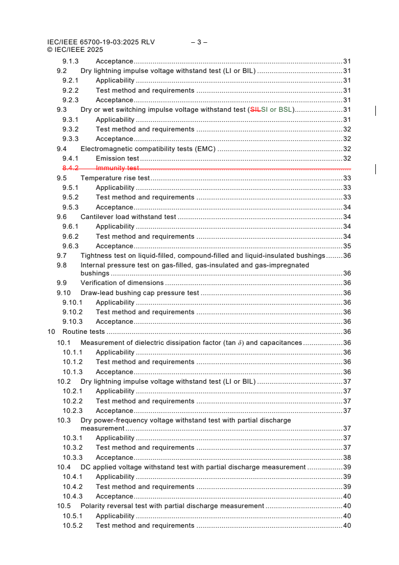 IEC/IEEE 65700-19-03:2025 applies to outdoor and indoor bushings of any voltage used on DC systems, of capacitance graded or gas insulated types for use as components of liquid-filled converter transformers and smoothing reactors, as well as air-to-air DC bushings. It applies to both line commutated converter (LCC), as well as voltage source converter (VSC) technologies. This document does not apply to the following: