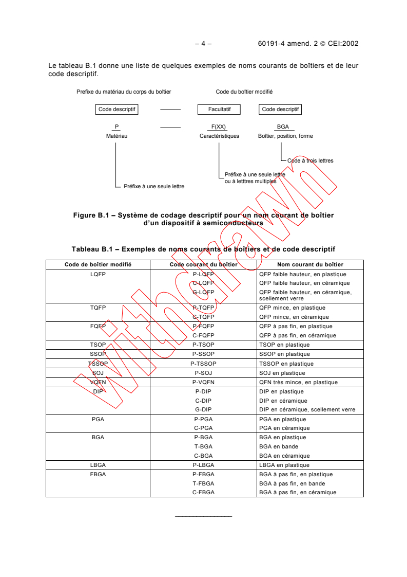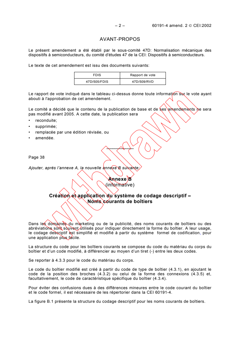 Amendement 2 - Normalisation mécanique des dispositifs à semiconducteurs - Partie 4: Système de codification et classification en formes des boîtiers pour dispositifs à semiconducteurs