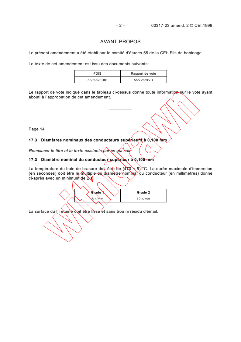 Le présent amendement a été établi par le comité d’études 55 de la CEI: Fils de bobinage.