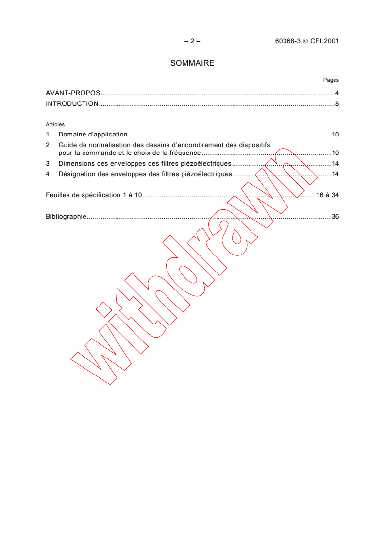 IEC 60368-3:2001 is an international standard published by the International Electrotechnical Commission (IEC) that specifies the standard outlines and lead connections for piezoelectric filters with leaded enclosures. This third edition updates the previous 1991 version by streamlining the enclosure types to those widely used in the industry, reflecting technological advances and ensuring mechanical interchangeability.