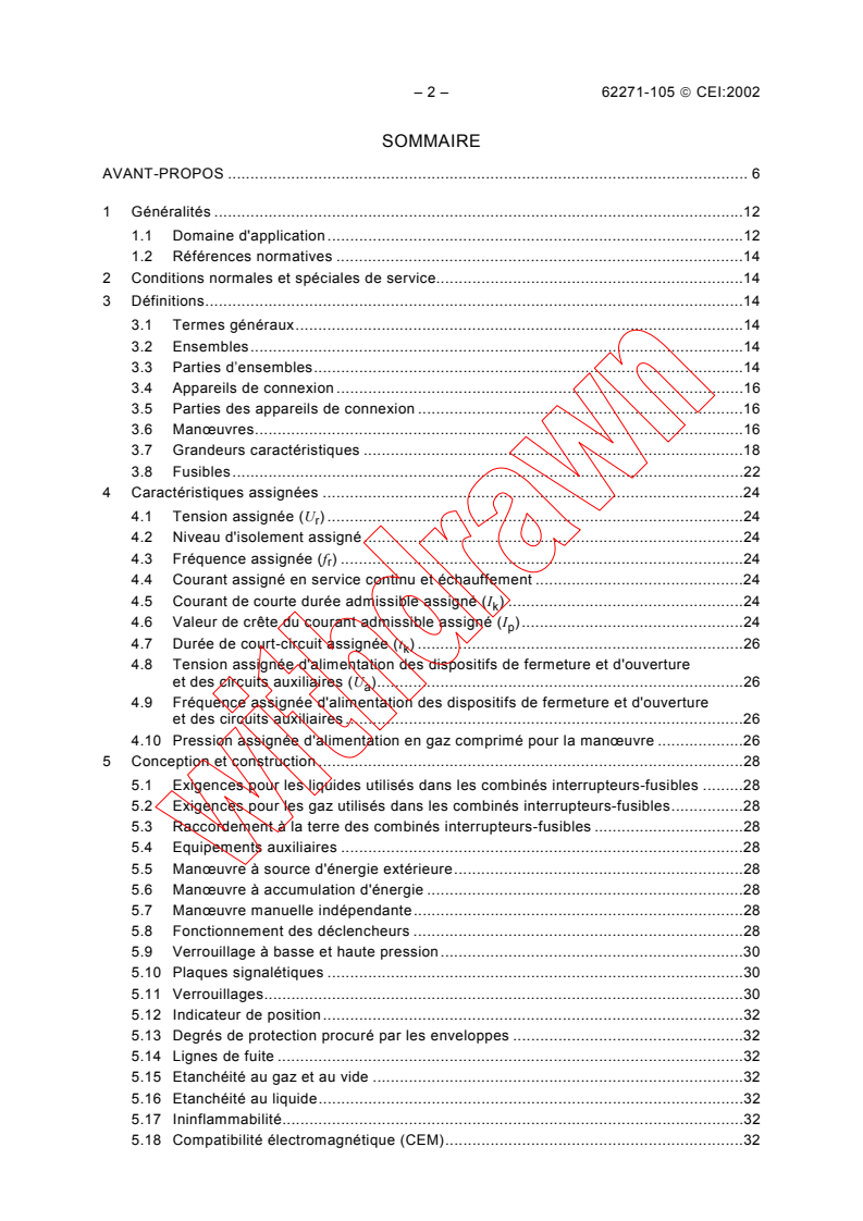 IEC 62271-105:2002 is a standard published by the International Electrotechnical Commission (IEC). Its full title is "High-voltage switchgear and controlgear - Part 105: Alternating current switch-fuse combinations". This standard covers: Applies to three-pole units for public and industrial distribution systems which are functional assemblies of switches including switch-disconnectors and current-limiting fuses designed so as to be capable of - breaking, at the rated recovery voltage, any current up to and including the rated short-circuit breaking current, - making, at the rated voltage, circuits to which the rated short-circuit breaking current applies. It does not apply to fuse-circuit-breakers, fuse-contactors, combinations for motor-circuits or to combinations incorporatingsingle capacitor bank switches.