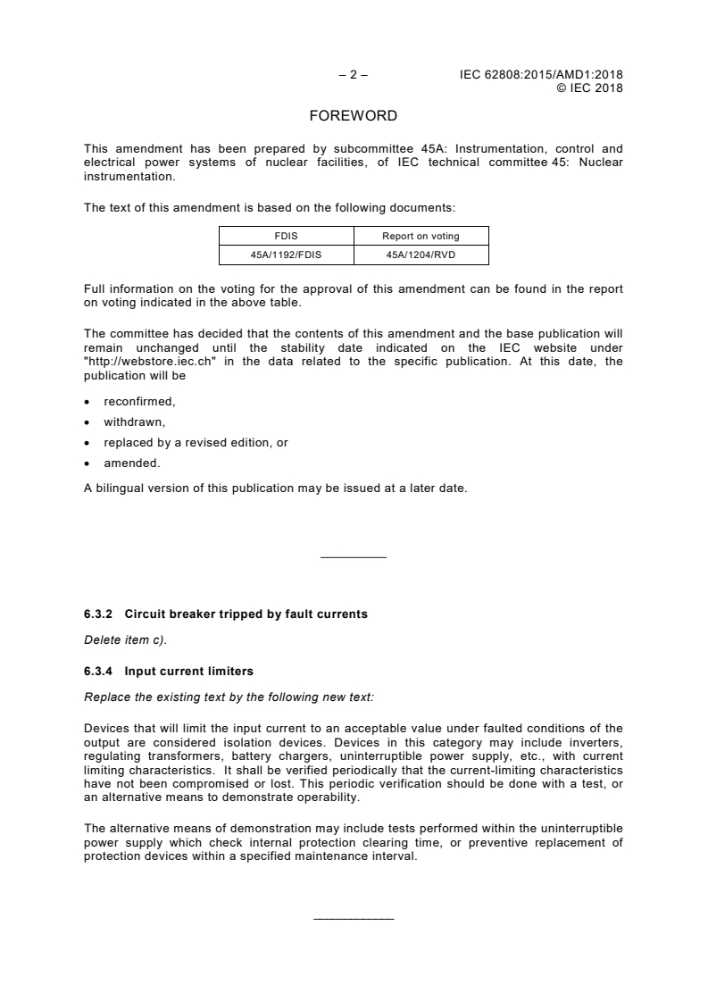 IEC 62808:2015/AMD1:2018 - Amendment 1 - Nuclear power plants - Instrumentation and control systems important to safety - Design and qualification of isolation devices Released:5/17/2018 Isbn:9782832257210