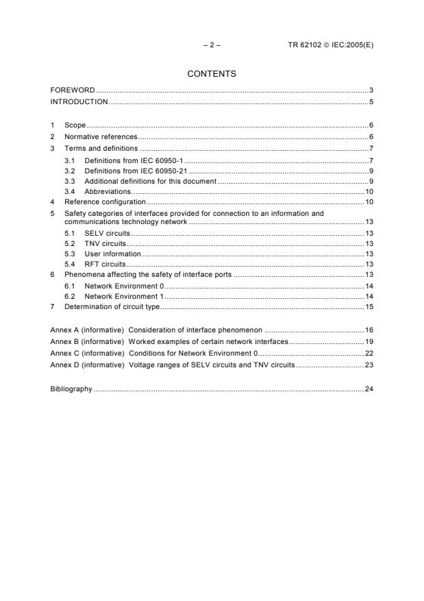 Keywords: IEC TR 62102:2005, electrical safety, classification of interfaces, SELV, TNV, RFT, IEC 60950-1, IEC 60950-21, information and communications technology networks.