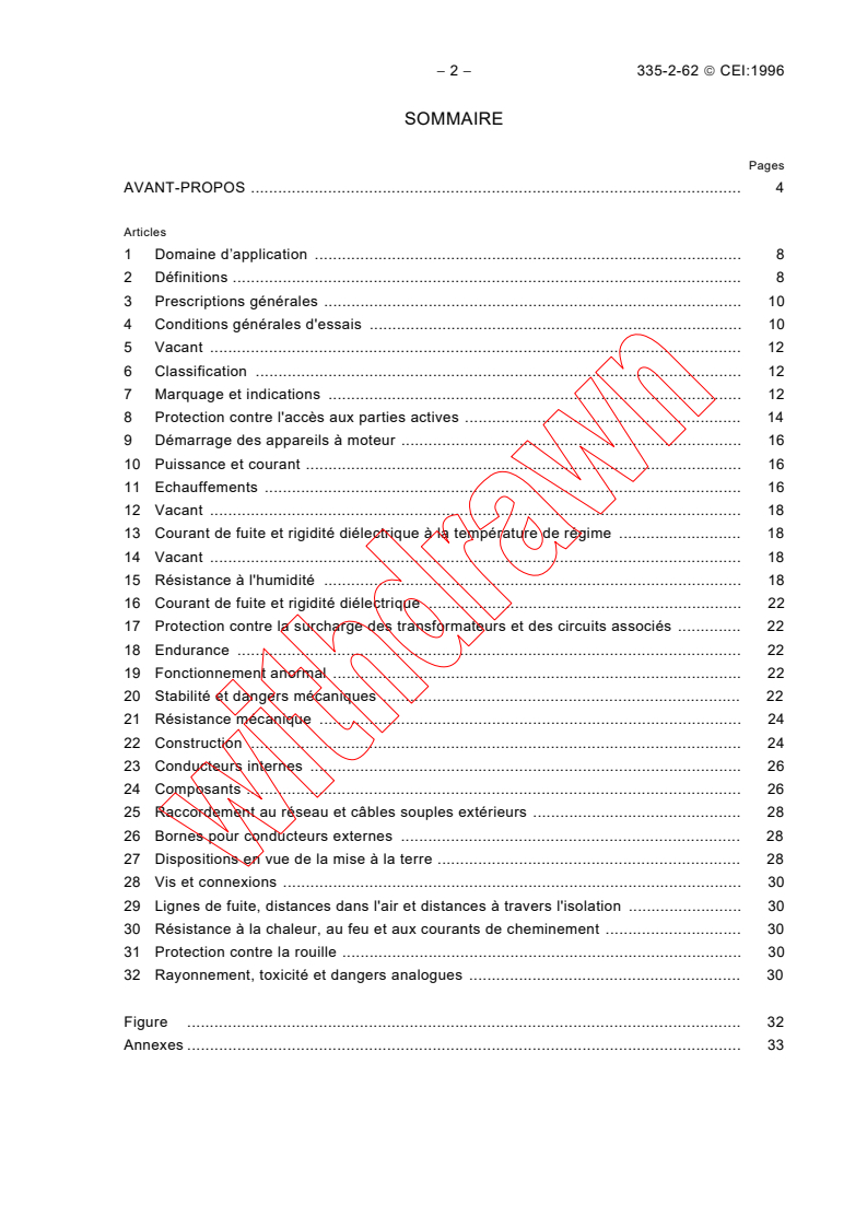 IEC 60335-2-62:1996 encompasses a comprehensive set of safety and performance criteria, including: