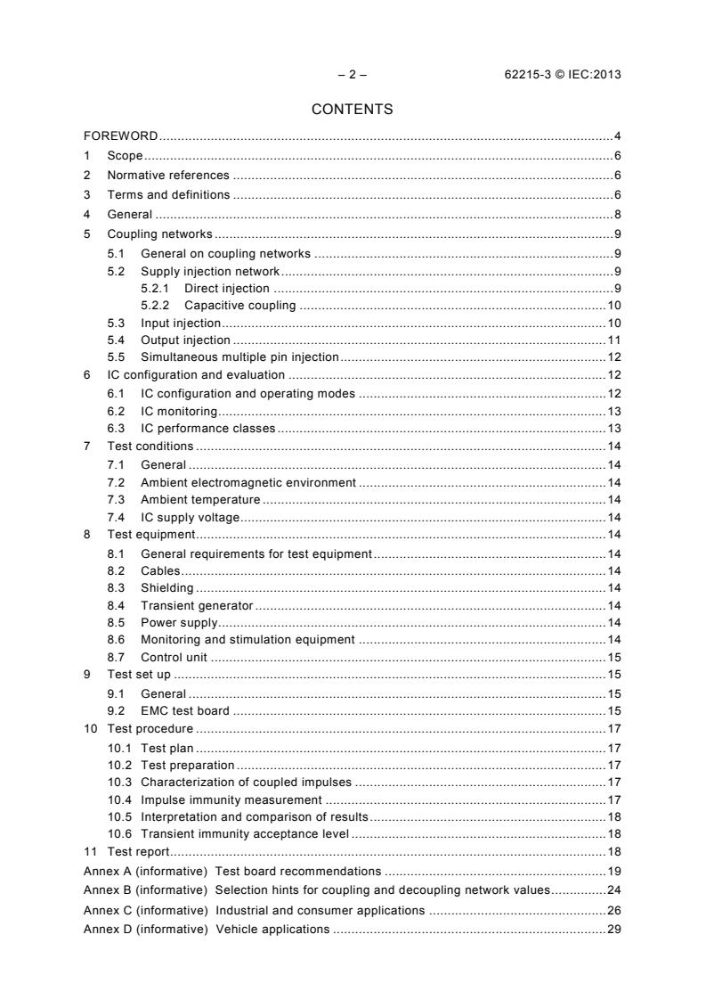 Keywords: IEC 62215-3, impulse immunity, integrated circuits, non-synchronous transient injection, transient immunity test, conducted electrical disturbances, coupling networks, IC testing, electromagnetic compatibility, EMC, electrical transient disturbances, automotive IC testing, industrial electronics, consumer electronics.