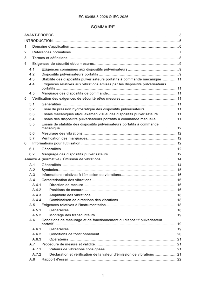 L'IEC 63458-3:2026 établit les exigences relatives à la sécurité pour les dispositifs pulvérisateurs destinés aux unités à jet d'eau à haute pression équipées de mécanismes de commande de tous types (moteur électrique, moteur à combustion interne, moteur pneumatique et moteur hydraulique, par exemple) dans lesquelles la pression est générée par des pompes. Le présent document traite de l'ensemble des phénomènes dangereux significatifs, situations dangereuses et événements dangereux qui surviennent lors de l'assemblage, du montage, du fonctionnement et de l'entretien des dispositifs pulvérisateurs pour unités à jet d'eau à haute pression, lorsque ceux-ci sont utilisés dans les conditions prévues et dans les conditions de mauvais usage raisonnablement prévisible établies par le fabricant. Dans le présent document, toutes les références aux dispositifs pulvérisateurs pour unités à jet d'eau à haute pression concernent les machines destinées à une ou plusieurs des applications industrielles suivantes: