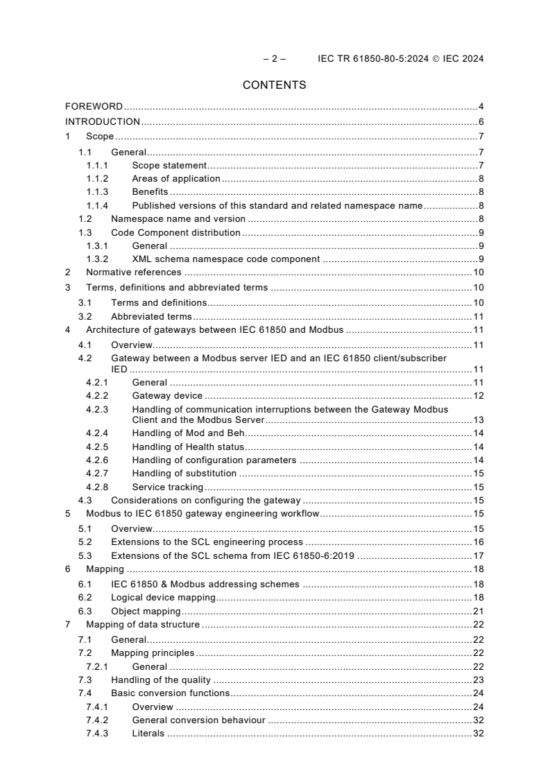Keywords: IEC TR 61850-80-5:2024, IEC 61850, IEC 61158-6, Modbus TCP, Modbus RTU, gateway mapping, SCL, IED interoperability, power utility automation.