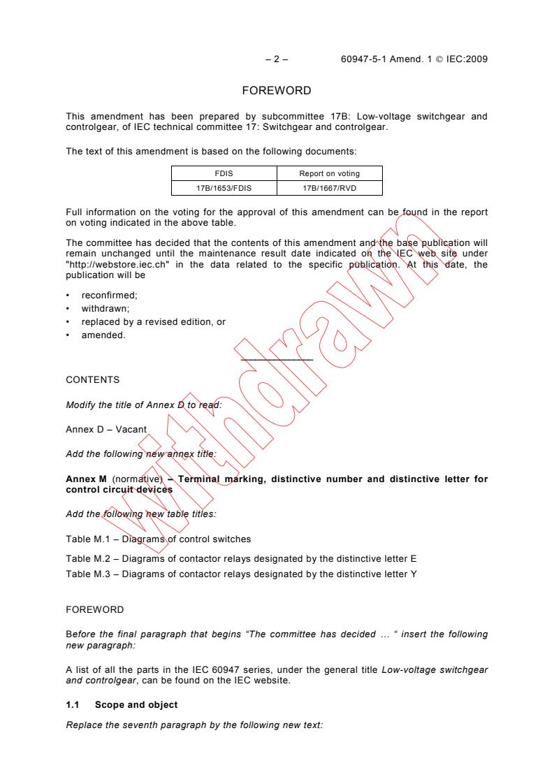 IEC 60947-5-1:2003/AMD1:2009 is a standard published by the International Electrotechnical Commission (IEC). Its full title is "Amendment 1 - Low-voltage switchgear and controlgear - Part 5-1: Control circuit devices and switching elements - Electromechanical control circuit devices". This standard covers: Amendment 1 - Low-voltage switchgear and controlgear - Part 5-1: Control circuit devices and switching elements - Electromechanical control circuit devices