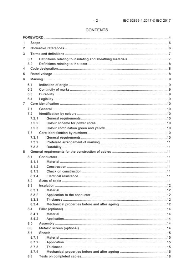 - Referenced test methods: Normative references include IEC 62893‑2, IEC 60245‑2, IEC 60332‑1‑2, IEC 62821‑1 (Annex B) and relevant parts of IEC 60811.